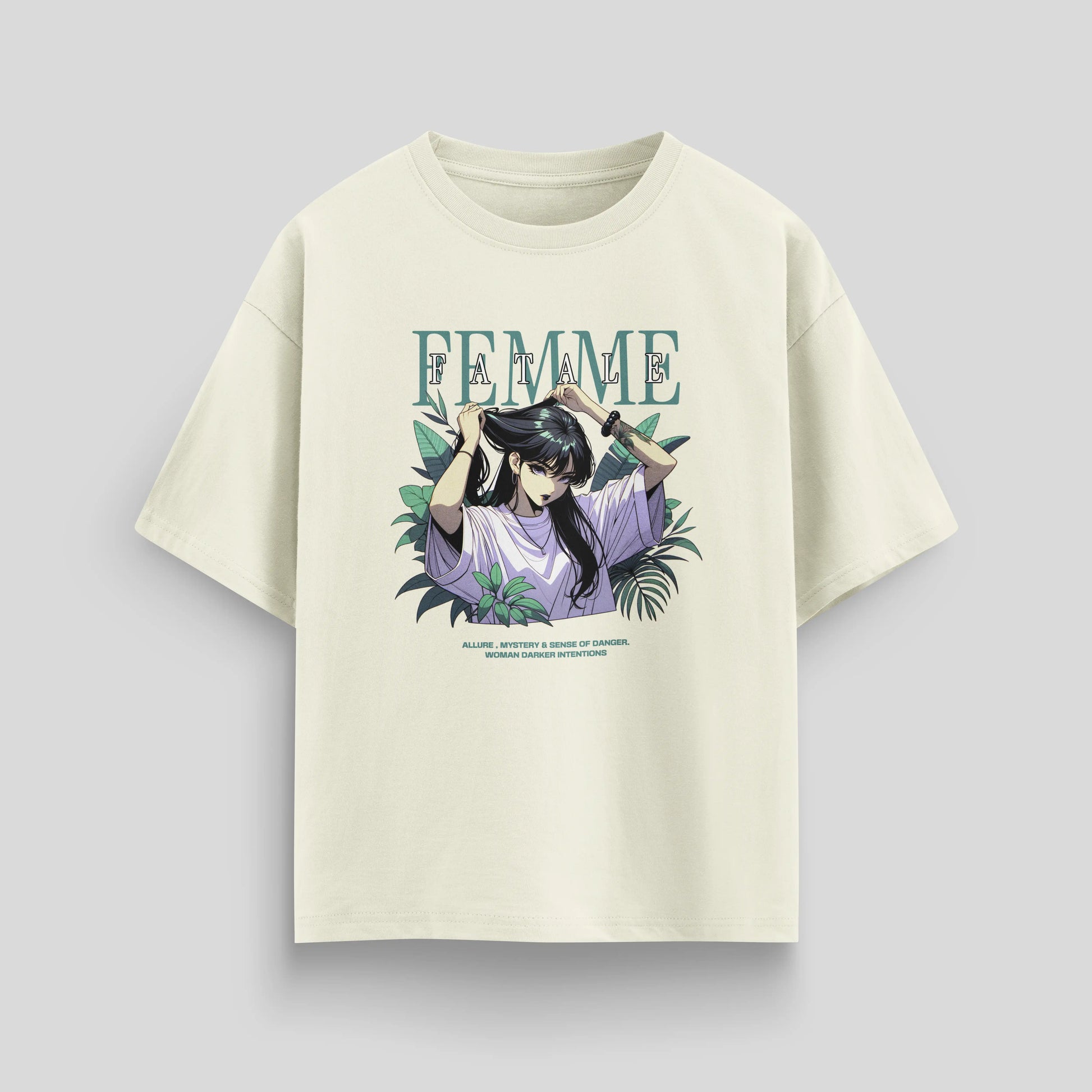 Unleash allure and edge with this femme fatale oversized tee—botanical art, moody mystery, and neo-noir vibes for the bold and stylish.