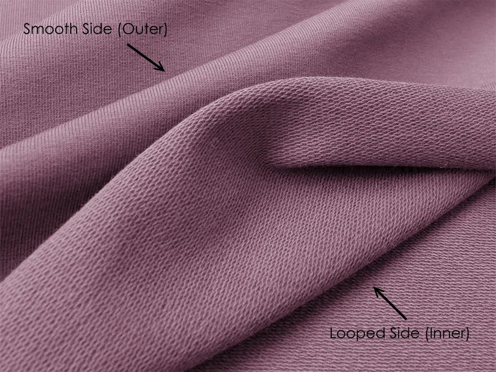 this fabric features a sleek, polished outer surface for a clean look, while the inner side has soft, moisture-wicking loops that enhance breathability and coziness.